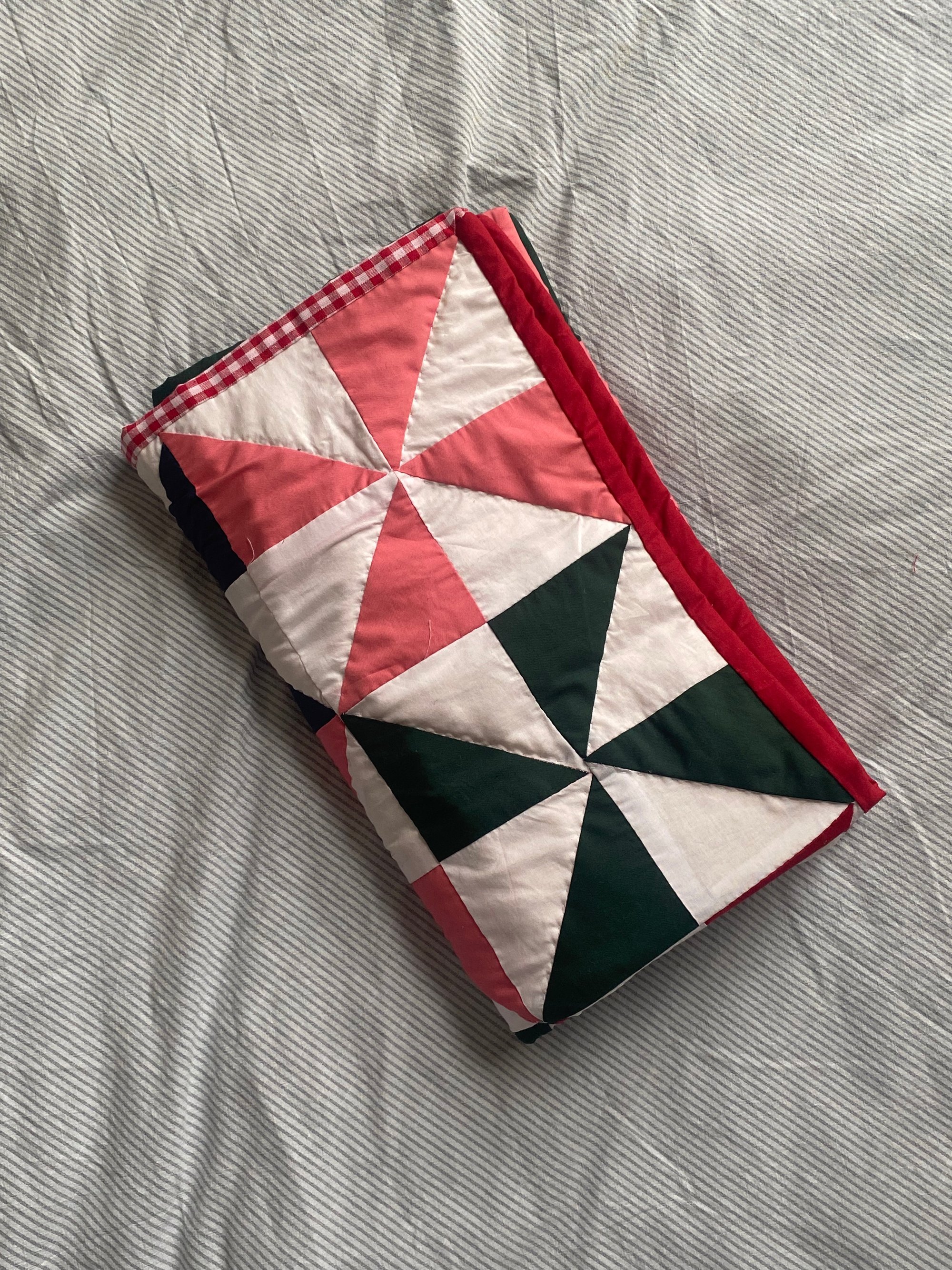 A classic pinwheel design in red, made from 100% cotton exterior and a 100% wool interior for the perfect cosy feel.