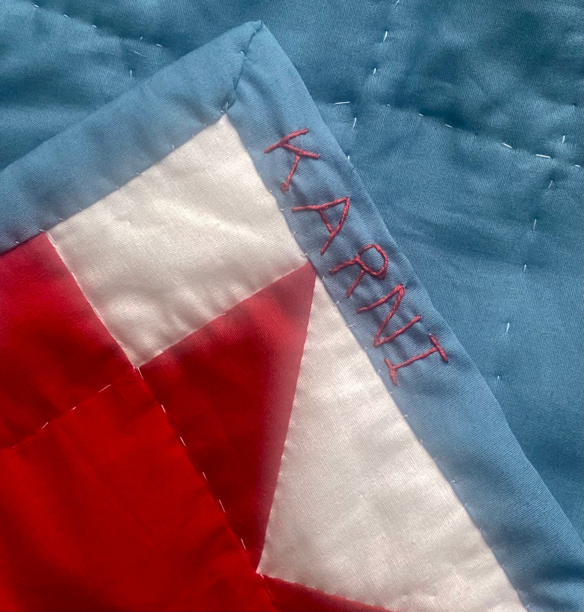 Please get in touch via my contact form and we can discuss what you have in mind. Once we have agreed on the embroidery details, you can purchase this add-on alongside your quilt order.